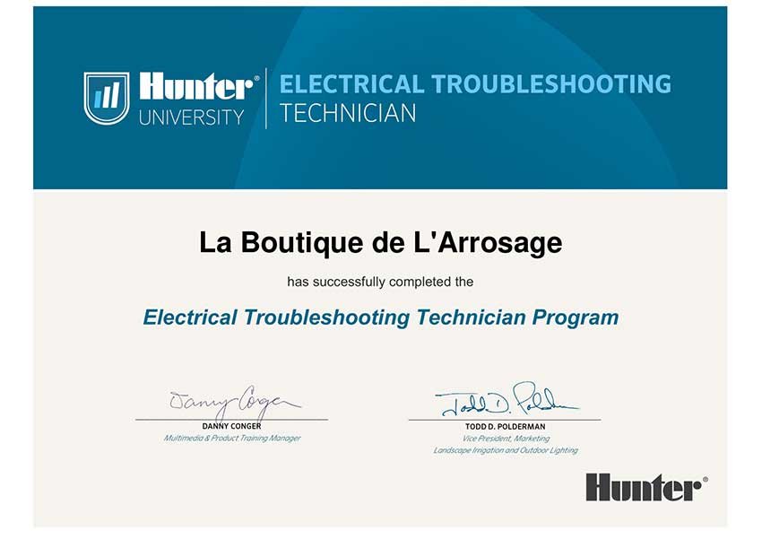 Tous les réseaux d’irrigation automatique qu’on réalise sur le Maroc sont couvert par une garantie d’un an. A la réception de votre Arrosage Automatique on vous remet une Attestation de Garantie d’un an.